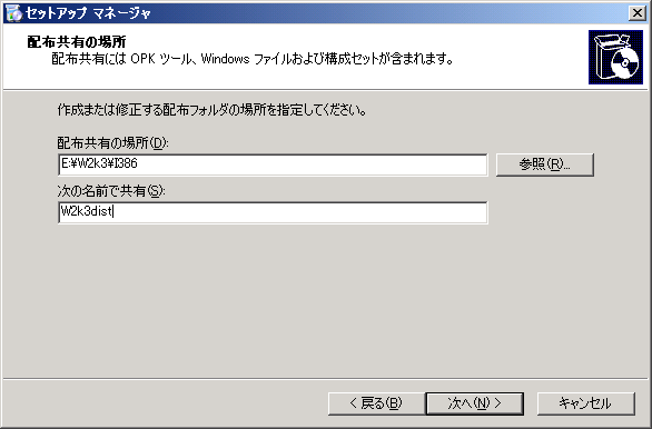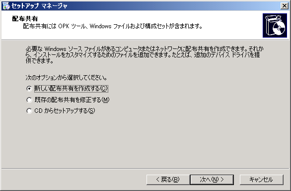 初めてのときは、新しい配布共有を作成するを選択、既存の配布共有があるときには、書かなくても判るね?