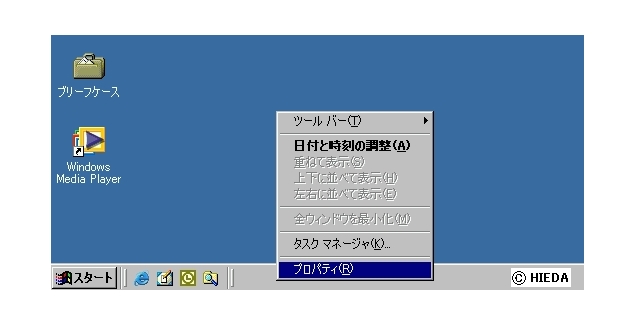 タスクバー上を右クリックしてメニューを表示。