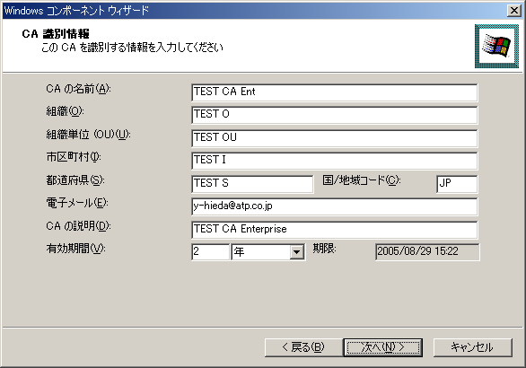 エンタープライズCAのインストール
