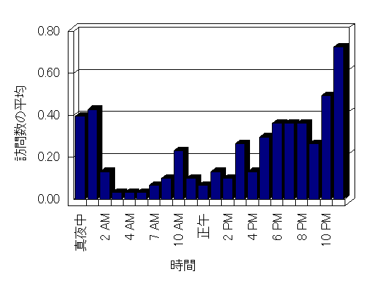 要求数と訪問数の平均と、訪問あたりの要求数の平均を時刻ごとに示します。