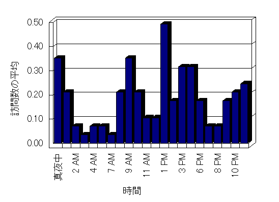 要求数と訪問数の平均と、訪問あたりの要求数の平均を時刻ごとに示します。