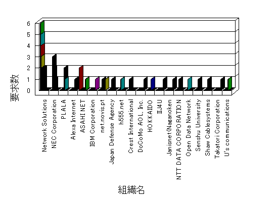 組織ユーザーにインターネット接続を提供する、商用または非営利団体、学術・行政機関などの、インターネット ドメイン で識別される団体や組織です。Microsoft Site Server Analysis は同じ組織に登録されたすべてのドメインを 1 つの組織としてグループ化します。ドメインがデータベースで使用できない場合は、1 つのインターネット ドメインが 1 つの組織を識別するのに使用されます。