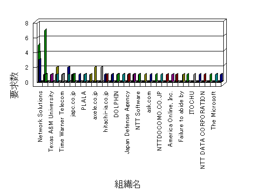 組織ユーザーにインターネット接続を提供する、商用または非営利団体、学術・行政機関などの、インターネット ドメイン で識別される団体や組織です。Microsoft Site Server Analysis は同じ組織に登録されたすべてのドメインを 1 つの組織としてグループ化します。ドメインがデータベースで使用できない場合は、1 つのインターネット ドメインが 1 つの組織を識別するのに使用されます。