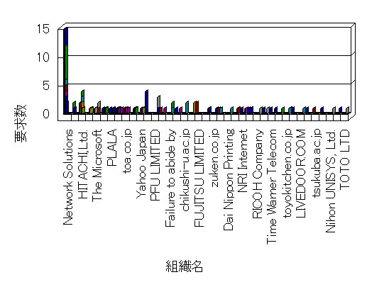 組織ユーザーにインターネット接続を提供する、商用または非営利団体、学術・行政機関などの、インターネット ドメイン で識別される団体や組織です。Microsoft Site Server Analysis は同じ組織に登録されたすべてのドメインを 1 つの組織としてグループ化します。ドメインがデータベースで使用できない場合は、1 つのインターネット ドメインが 1 つの組織を識別するのに使用されます。