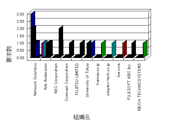 組織ユーザーにインターネット接続を提供する、商用または非営利団体、学術・行政機関などの、インターネット ドメイン で識別される団体や組織です。Microsoft Site Server Analysis は同じ組織に登録されたすべてのドメインを 1 つの組織としてグループ化します。ドメインがデータベースで使用できない場合は、1 つのインターネット ドメインが 1 つの組織を識別するのに使用されます。