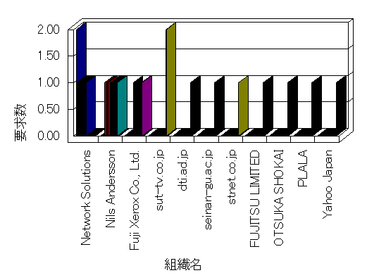 組織ユーザーにインターネット接続を提供する、商用または非営利団体、学術・行政機関などの、インターネット ドメイン で識別される団体や組織です。Microsoft Site Server Analysis は同じ組織に登録されたすべてのドメインを 1 つの組織としてグループ化します。ドメインがデータベースで使用できない場合は、1 つのインターネット ドメインが 1 つの組織を識別するのに使用されます。