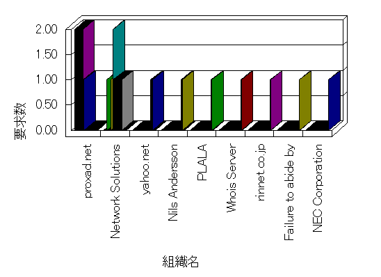 組織ユーザーにインターネット接続を提供する、商用または非営利団体、学術・行政機関などの、インターネット ドメイン で識別される団体や組織です。Microsoft Site Server Analysis は同じ組織に登録されたすべてのドメインを 1 つの組織としてグループ化します。ドメインがデータベースで使用できない場合は、1 つのインターネット ドメインが 1 つの組織を識別するのに使用されます。