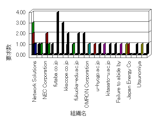 組織ユーザーにインターネット接続を提供する、商用または非営利団体、学術・行政機関などの、インターネット ドメイン で識別される団体や組織です。Microsoft Site Server Analysis は同じ組織に登録されたすべてのドメインを 1 つの組織としてグループ化します。ドメインがデータベースで使用できない場合は、1 つのインターネット ドメインが 1 つの組織を識別するのに使用されます。