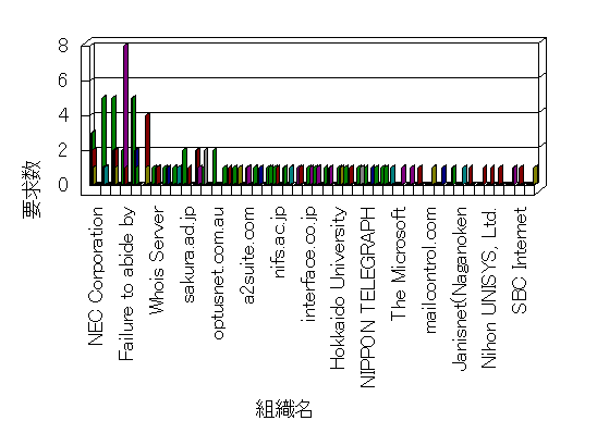 組織ユーザーにインターネット接続を提供する、商用または非営利団体、学術・行政機関などの、インターネット ドメイン で識別される団体や組織です。Microsoft Site Server Analysis は同じ組織に登録されたすべてのドメインを 1 つの組織としてグループ化します。ドメインがデータベースで使用できない場合は、1 つのインターネット ドメインが 1 つの組織を識別するのに使用されます。