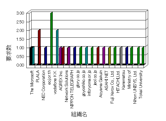 組織ユーザーにインターネット接続を提供する、商用または非営利団体、学術・行政機関などの、インターネット ドメイン で識別される団体や組織です。Microsoft Site Server Analysis は同じ組織に登録されたすべてのドメインを 1 つの組織としてグループ化します。ドメインがデータベースで使用できない場合は、1 つのインターネット ドメインが 1 つの組織を識別するのに使用されます。