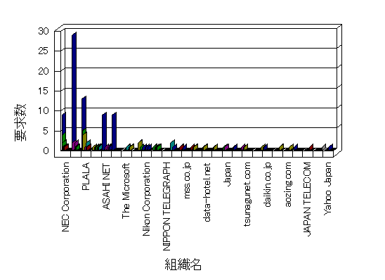 組織ユーザーにインターネット接続を提供する、商用または非営利団体、学術・行政機関などの、インターネット ドメイン で識別される団体や組織です。Microsoft Site Server Analysis は同じ組織に登録されたすべてのドメインを 1 つの組織としてグループ化します。ドメインがデータベースで使用できない場合は、1 つのインターネット ドメインが 1 つの組織を識別するのに使用されます。