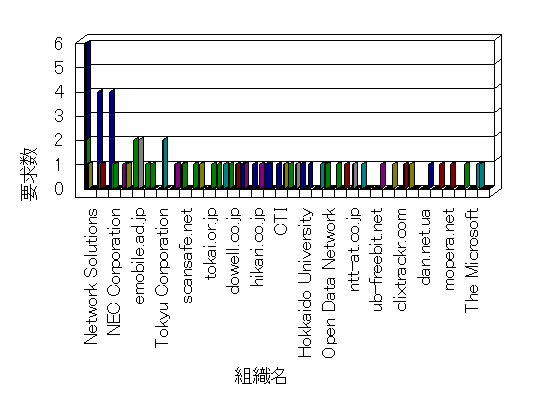 参照組織のサイトには、このサイトにリンクするページがあります。グラフでは、このサイトへのアクセス数に基づいた、上位 10 組織を示します。