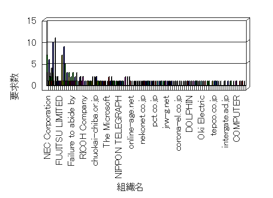 組織ユーザーにインターネット接続を提供する、商用または非営利団体、学術・行政機関などの、インターネット ドメイン で識別される団体や組織です。Microsoft Site Server Analysis は同じ組織に登録されたすべてのドメインを 1 つの組織としてグループ化します。ドメインがデータベースで使用できない場合は、1 つのインターネット ドメインが 1 つの組織を識別するのに使用されます。
