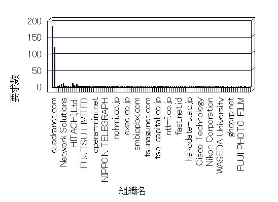 組織ユーザーにインターネット接続を提供する、商用または非営利団体、学術・行政機関などの、インターネット ドメイン で識別される団体や組織です。Microsoft Site Server Analysis は同じ組織に登録されたすべてのドメインを 1 つの組織としてグループ化します。ドメインがデータベースで使用できない場合は、1 つのインターネット ドメインが 1 つの組織を識別するのに使用されます。