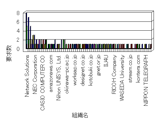 組織ユーザーにインターネット接続を提供する、商用または非営利団体、学術・行政機関などの、インターネット ドメイン で識別される団体や組織です。Microsoft Site Server Analysis は同じ組織に登録されたすべてのドメインを 1 つの組織としてグループ化します。ドメインがデータベースで使用できない場合は、1 つのインターネット ドメインが 1 つの組織を識別するのに使用されます。