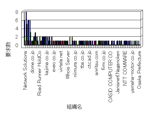 組織ユーザーにインターネット接続を提供する、商用または非営利団体、学術・行政機関などの、インターネット ドメイン で識別される団体や組織です。Microsoft Site Server Analysis は同じ組織に登録されたすべてのドメインを 1 つの組織としてグループ化します。ドメインがデータベースで使用できない場合は、1 つのインターネット ドメインが 1 つの組織を識別するのに使用されます。