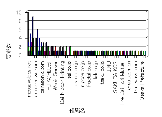 参照組織のサイトには、このサイトにリンクするページがあります。グラフでは、このサイトへのアクセス数に基づいた、上位 10 組織を示します。