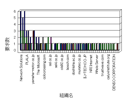 組織ユーザーにインターネット接続を提供する、商用または非営利団体、学術・行政機関などの、インターネット ドメイン で識別される団体や組織です。Microsoft Site Server Analysis は同じ組織に登録されたすべてのドメインを 1 つの組織としてグループ化します。ドメインがデータベースで使用できない場合は、1 つのインターネット ドメインが 1 つの組織を識別するのに使用されます。